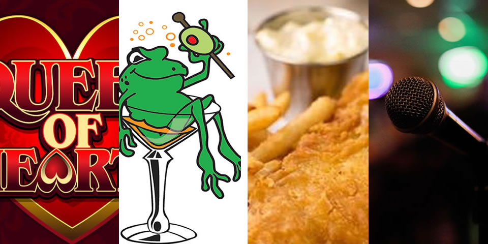 Queen of Hearts every Monday at 8pm with a different food special during the drawing, Hoppy Hour every day from 6pm till 8pm with $4 Featured Craft Pints