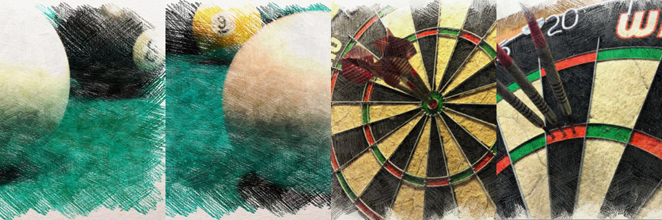 We've expanded. Two pool tables and 7 dart boards. Come out and play eight ball or nine ball. You'll hit a bullseye and have tons of fun in our party room!