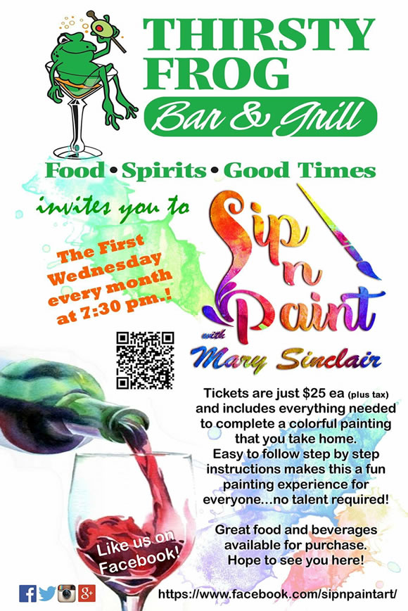 Tuesdays are always a great night to come out to the Thirsty Frog and take in a sporting event with friends or family. Ice cold beer and delicious food are always on the menu. Stop in, relax and enjoy your favorite team or sport with a drink and an appetizer.